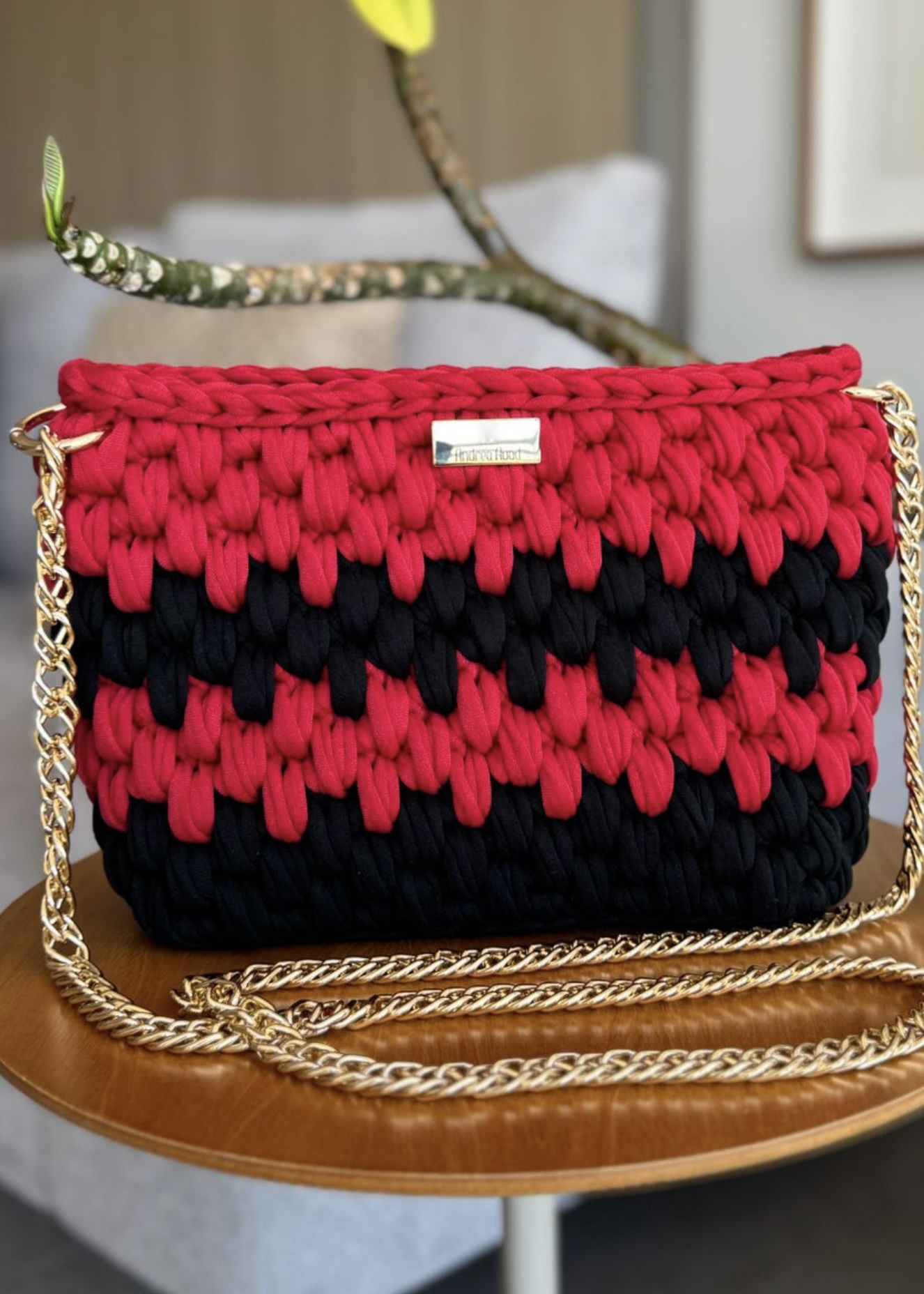 Bolsa confeccionada em fio de malha premium inspirada nas cores do Flamengo. Possui forro, fecho de ímã e alça de corrente.